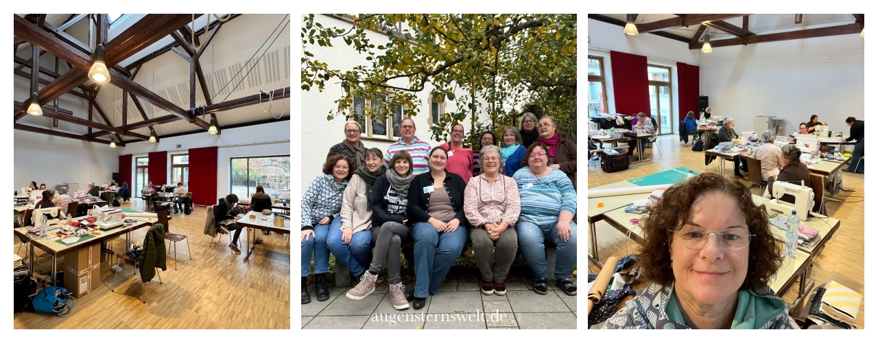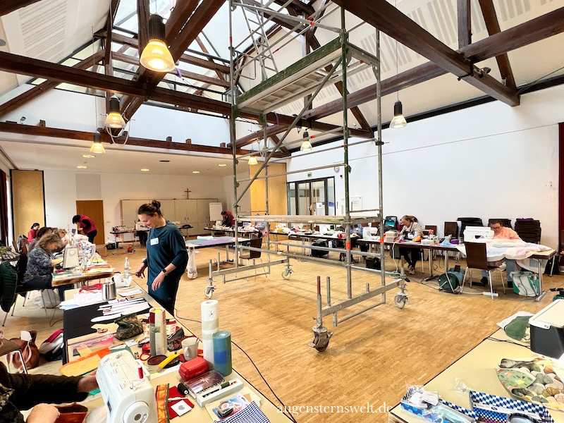 Bei Andrea trifft sich heute wieder die Runde zum Samstagsplausch und ich geselle mich gerne dazu. Am letzten Wochenende hat wieder unser Nähtreffen stattgefunden. Zum ersten Mal trafen wir uns mit fast 20 Leuten. Ich hatte den großen Saal im Gemeindehaus gebucht und obwohl mitten im Raum ein großes Gerüst stand, war für alle genügend Platz.