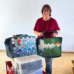 Super nett fand ich, das unser Nähtreffen wieder durch Goodies von Bettina von BlueBetti (Patchworkstoff), Katrin von Schwarze Faden (Hexie Nähset), Dortex und dem BlaBla Café (Label Set), Prym (Roll-Maßband) und Sulky by Gunold (spezial Garn) unterstützt wurde. Vielen, ♥ herzlichen ♥ Dank, Sie haben den Teilnehmerinnen vor Freude glänzende Augen beschert! 🙂