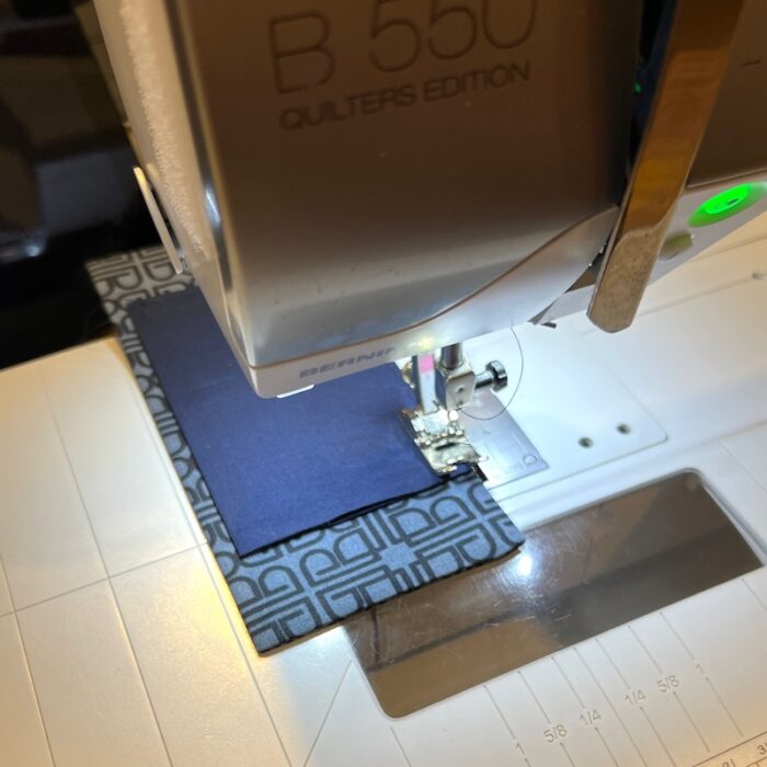 Jede Teilnehmerin legte unter ihren Stoff ein Stück Abreißvlies. So lässt sich der Stoff besser besticken, weil er durch das Vlies mehr Stabilität erhält. Die Sternvorlage wurde mit der Schere ausgeschnitten und auf den Stoff mit einem Stoffmalstift übertragen. Dann probierten alle am Probestück (Thermolam), wie das Freihandsticken/Nähmalen mit abgesenktem Transporteur und Stopffuß funktioniert.