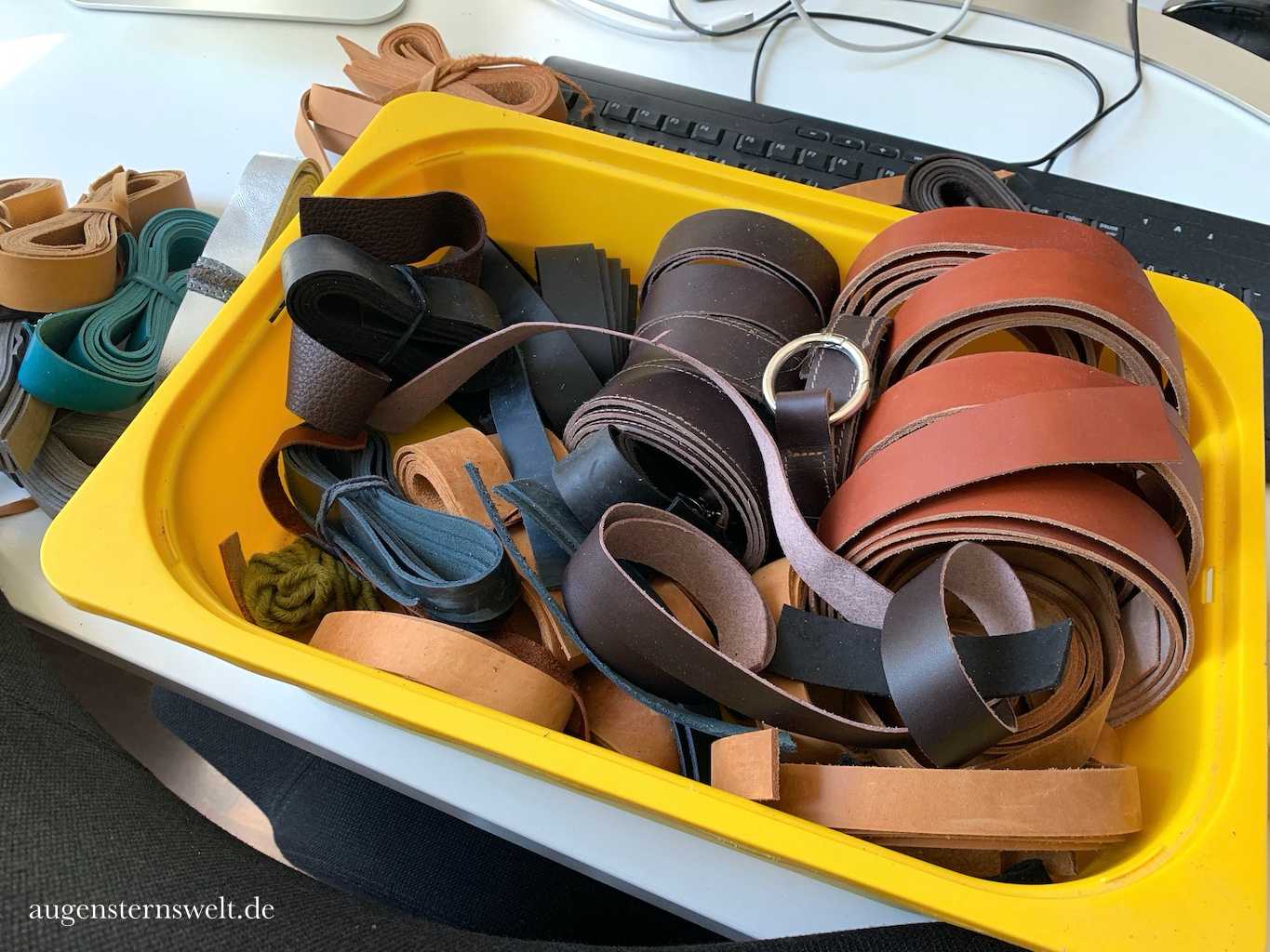 - Leder, Taschen-Metallteile, Henkel und Reißverschlüsse aus dem Machwerk Shop.