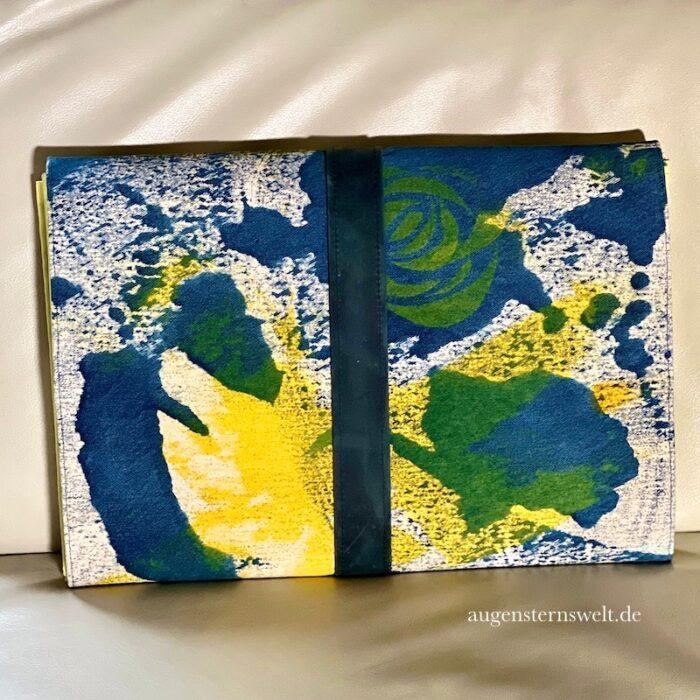 Ich hatte überlegt gleich im Juli vom Taschenworkshop zu berichten, aber dann entschied ich mich anders. Auf dem Bild seht ihr den Stoff vom Siebdruckkurs der 2020 in Mannheim, im Jeromin Werkladen bei Martinas Taschennähkurs mit Siebdruck entstanden war. Darüber hatte ich schon vor einer ganzen Weile berichtet. Auf der anderen Seite gibt es einen Blick auf den kreativ gestalteten Nähplatz, sprich das normale Näh-Chaos neben der Nähmaschine.